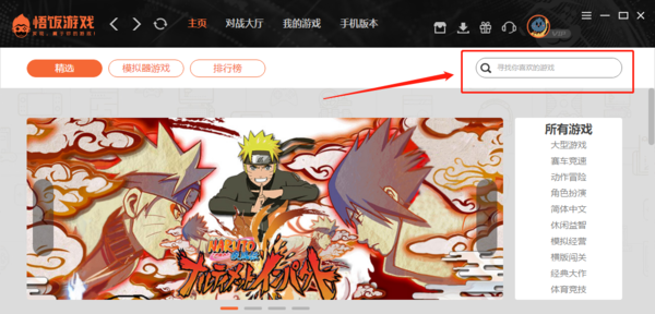 想要在电脑上下载魂斗罗的小伙伴,打开悟饭游戏厅并登录自己的账号之后,可以直接在右上角的搜索框中,输入“魂斗罗”字样进行搜索。