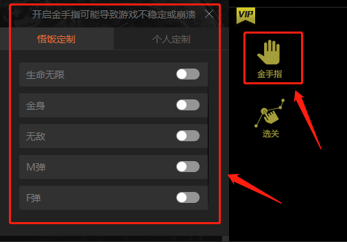 同样是在魂斗罗游戏界面,在页面右侧点击“金手指图标”,在弹出的窗口中,可以直接开启悟饭游戏厅提前设置好的金手指,也可以自定义添加自制的金手指。不过,开启金手指功能需要开通悟饭游戏厅的会员,同时金手指也可能会导致游戏运行不稳定。