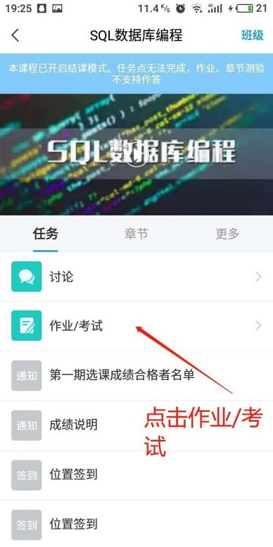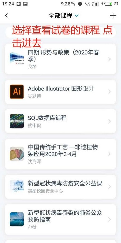 第三步:选择需要查看试卷的课程--这里我以SQL数据库编程为例(如图所示)。