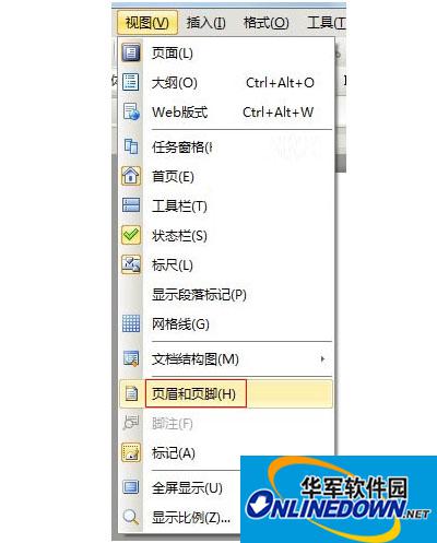 1、点击菜单栏--视图--页眉页脚,将页眉页脚添加到文档中。