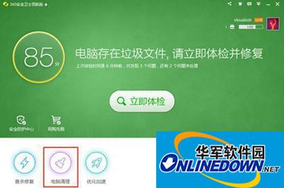 1、首先,打开安全卫士主界面,点击下方的“电脑清理”。