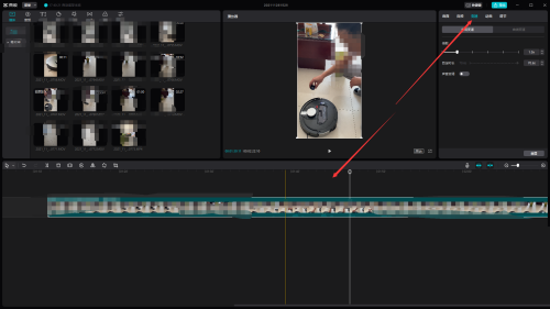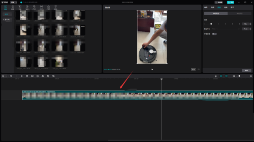 第一步:打开剪映,进入主页把需要变速的素材放到时间轴中。
