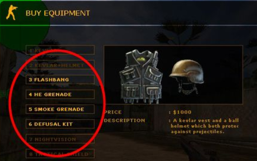 购买炸弹和烟雾、闪光弹。在游戏中不仅能买枪,还可购买手雷。按下O,选择你要的手雷即可。