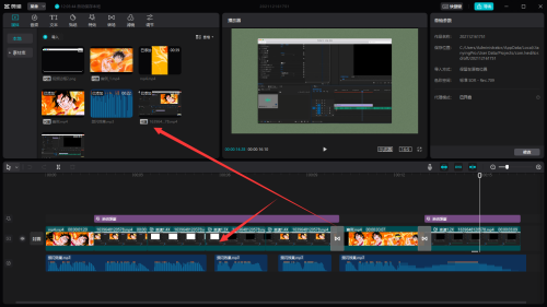第二步:接着在本地素材中选择一段素材放置到时间轴中。