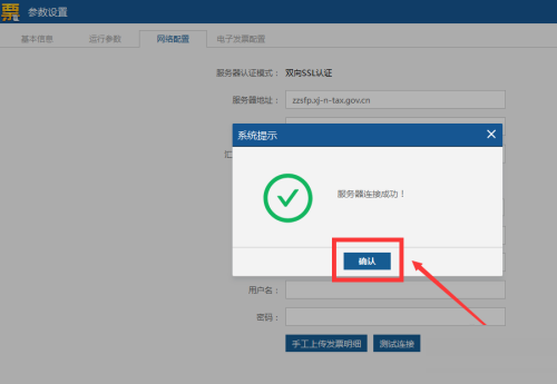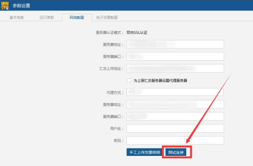 第二步:进入参数设置界面,点击网络配置,选择测试连接。