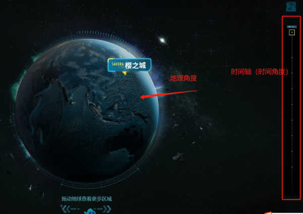 当我们进入到逆战的剧情站,这感觉就像是我们身处未来军事基地的指挥中心,一股高科技感扑面而来。我们不难发现,逆战的剧情站分别以时间和地点两个维度来阐述剧情的。首先是地点维度,我们可以看到屏幕中间的星球,在这个星球上有3个地点,分别是Z博士归来、禁魔岛和樱之城,我们点击对应的标签,就可以看到对应地点的故事。