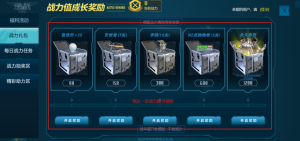 我们在逆战的剧情站上,除了能以不同维度观察、了解逆战的剧情,还有战力福利活动等我们来参与。其中,在该活动中,我们每日签到、进行塔防模式、打开逆战助手都可以获得战力值,而且当我们的战力达到一定数值即可获得相应奖励,另外,我们还可以用战力进行抽奖,以获得其他精美礼品。