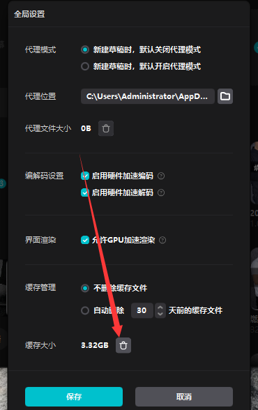 第四步:最后点击缓存大小后面的垃圾桶即可清理。