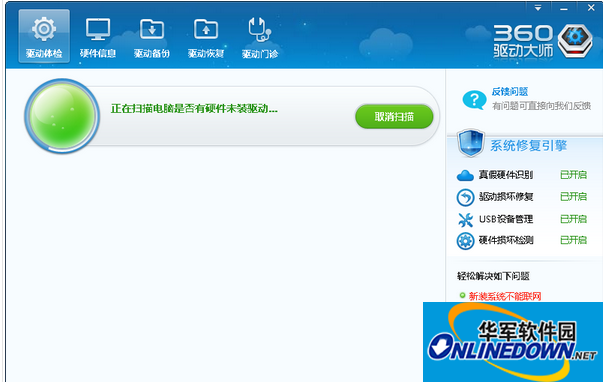 360安全卫士驱动的检测,在漏洞修复功能界面上的右侧选择“驱动大师”,点击就可以打开驱动检测的界面,用户可以根据需求来进行检测,在检测中,有出现更新状态就可更新。