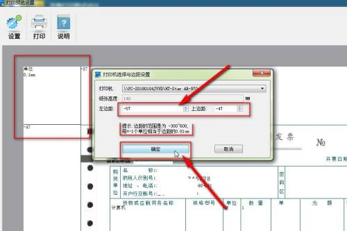 第四步:根据实际打印机的不同,分别设置左边距及上边距值,单击“确定”即可。