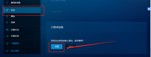 如果觉得有异常的登录信息和设备,用户可以对已登录设备进行注销处理。同样是在已登录设备选项一栏中,点击右上角的“注销所有设置”字样,在弹出的提示窗口中,选择“注销”键,就能将账号从设备中登出了。