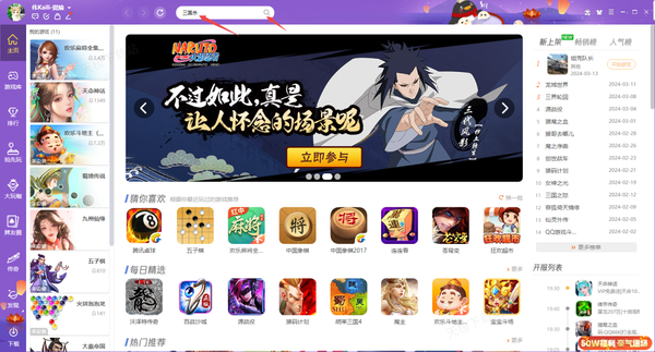 1、启动电脑端的QQ游戏大厅,然后登录自己的账号。接着,在软件顶部中间位置的【搜索框】中,输入【三国杀】并按下回车键或搜索键。