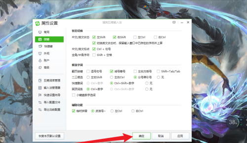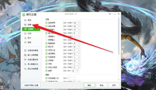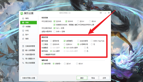 第二步:在按键界面即可设置搜狗五笔输入法的候选字词功能。