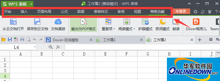 可以看到菜单栏下面只显示了开始、插入等按钮,其他的操作都隐藏起来了,要鼠标放上去才会显示。