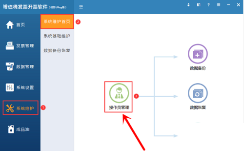第一步:登录增值税发票开票软件税务UKey版,点击系统维护,选择操作员管理。