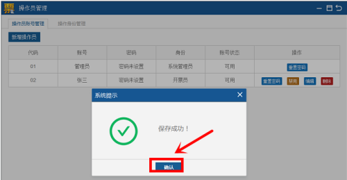 第三步:弹出提示,点击确认,开票员设置成功。