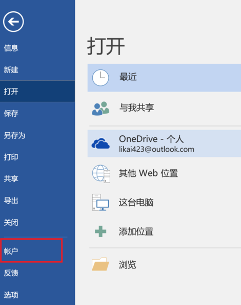 在新的菜单中选择红框中的账户。