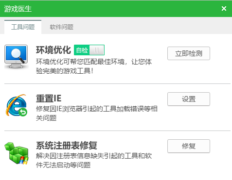 遇到这种情况可能是因为IE浏览器运行出现问题,可以点击新浪页游助手主页面下方的“游戏医生”按钮,选择“重置IE”选项,并检查电脑网络连接是否正常。