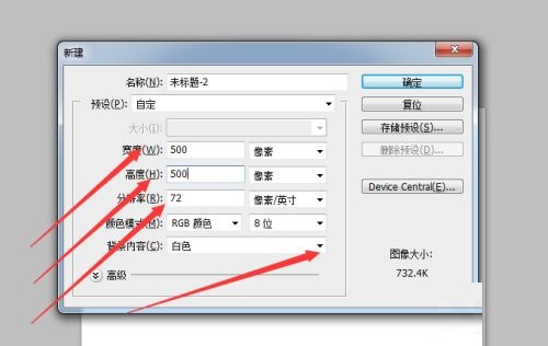 第四步:我们就可以选择需要创建的文件像素,分辨率。 然后点击确定按钮(如图所示)。