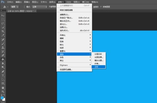 第七步:接着点击上方的【滤镜】下的【渲染】下的【云彩】(如图所示)。