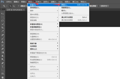 第四步:然后我们为新建的画布,新建一个图层,点击上方的【图层】下的【新建】下的【图层】(如图所示)。
