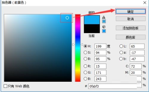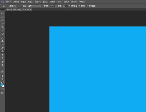 第六步:然后将新建的图层填充成刚刚调好的蓝色,使用工具栏的【油漆桶工具】(如图所示)。