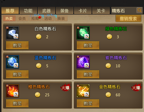 之后根据装备的不同品质,需要用到的强化材料也会不同,如果满足强化条件,点击右下角的精炼按钮就能开始装备强化了。