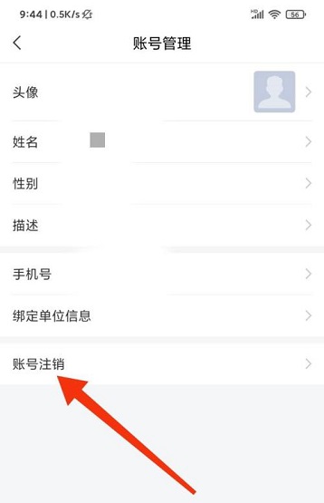 第四步:接着进入到学习通的账号管理页,找到最下方的“账号注销”,点击打开(如图所示);
