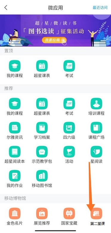 第二步:在微应用页面中找到第二课堂(如图所示)。