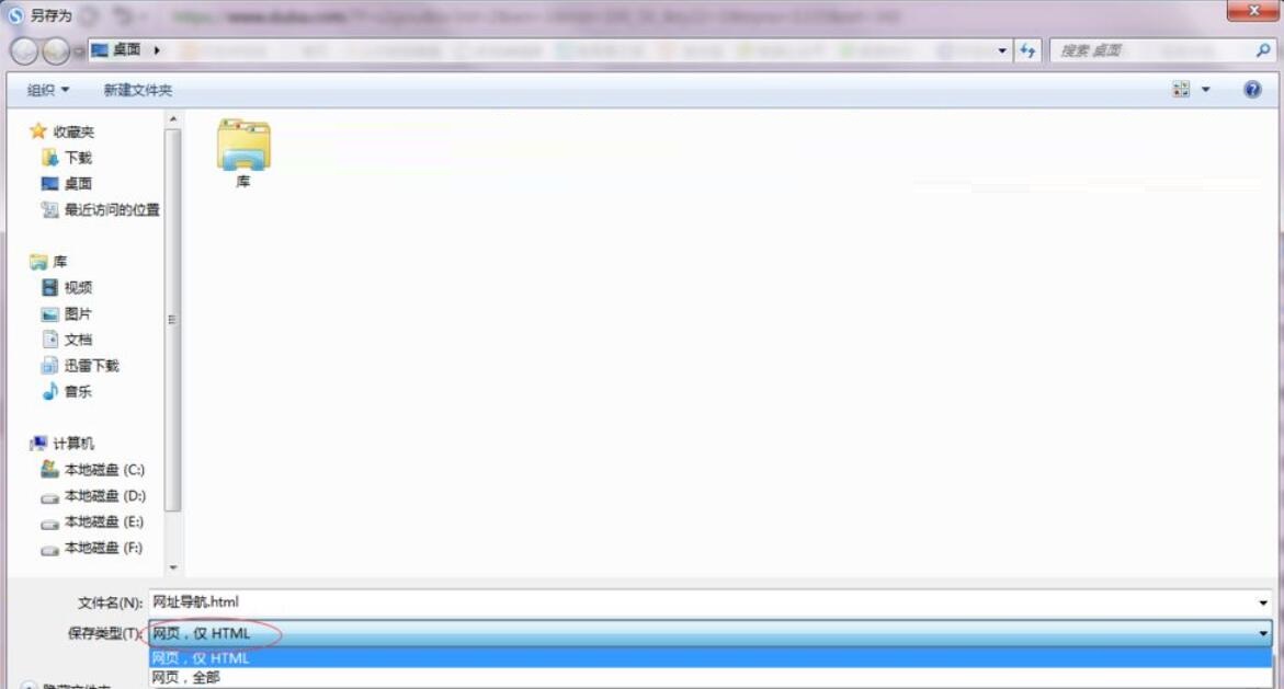此时会弹出一个另存为对话框。在对话框内保存有两种形式,一种是只保存为网页HTML,一种是网页全部。