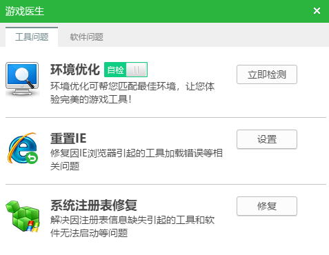 3.系统注册表修复:解决因注册表信息缺失,引起的游戏工具和新浪页游助手游戏软件无法启动的问题。