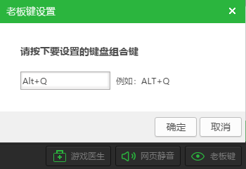想要在新浪页游助手上设置老板键的小伙伴,其实设置方法很简单,在电脑上打开新浪页游助手,并登陆自己的账号之后,直接点击页面右下角的“老板键”图标。在弹出的老板键设置窗口,输入自己习惯使用的快捷键组合,比如说“Alt+Q”,最后再点击“确定”键就完成了。