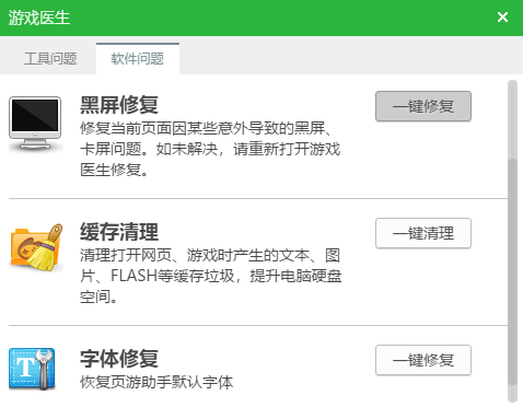 5.黑屏修复:用于解决在打开游戏页面时,因未知原因导致的黑屏情况。