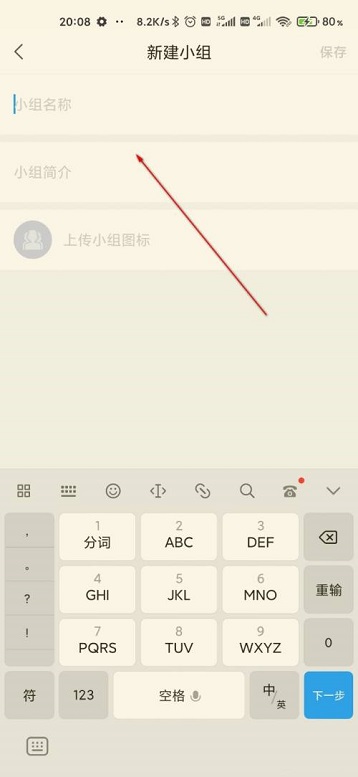 第五步:最后输入小组信息,点击保存即可新建(如图所示)。