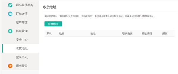 编写自己的收货地址,在游戏中兑换到实物礼品后方便系统进行邮寄,要注意的是,每个账号最多设置10个地址,设置有多个地址的时候,要提前选好默认收货地址。