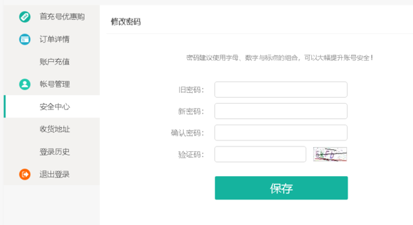 跳转到新浪页游助手用户中心页面之后,在左侧选择“账号管理”一栏中的“安全中心”选项,页面刷新后,点击登录密码选项右侧的“立即修改”键,就能跳转到密码修改页面,编辑新密码了。
