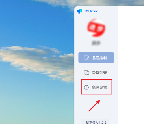 第二步:打开todesk后选择点击高级设置选项(如图所示)。
