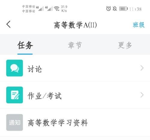 第四步:进入课程后,点击任务中的考试/作业(如图所示)。