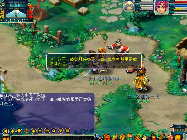 1、需要结拜的玩家首先要组队到长寿村中,找到游戏中的NPC“虬髯客”来申请结拜,全部的成员都同意NPC提出的是否结拜的询问后才能结拜。