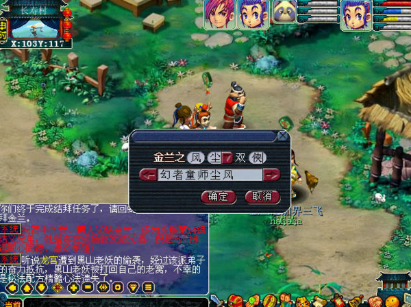 结拜成功之后,再次组队由队长向虬髯客对话设置结拜的称谓,结拜称称谓最多7个字符,第4和第7个字符由队长抉择,第5个字队长可以在系统提供的子库中选择,其余的部分系统将自动定制。