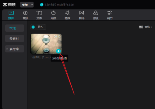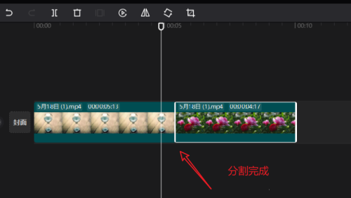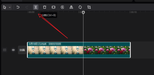 第三步:视频进入轨道后,将指针移动到需要切割的位置,然后点击轨道栏左上方的切割图标。