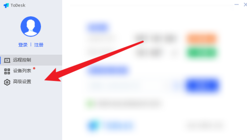 第一步:进入todesk主界面里,点击左侧的高级设置。