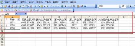 6、单击“确定”后,关闭对话框,返回工作表,就可以看到Excel表格中只对年份为1978年的数据进行显示。