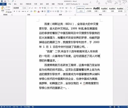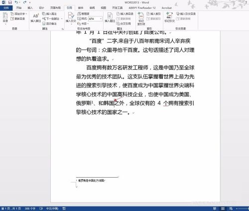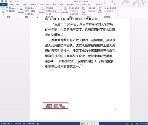 第一步:打开word 2013,找到需要插入注脚的内容(如图所示)。