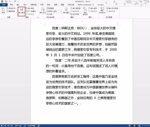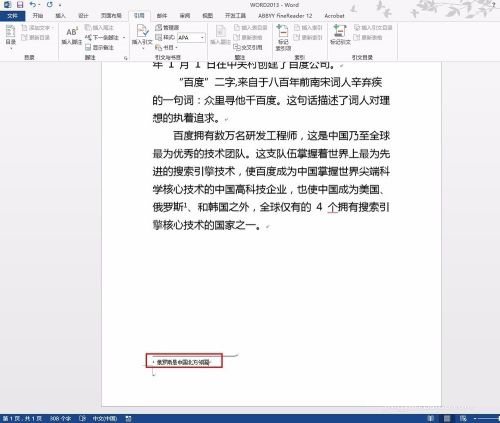 第七步:插入完成,同时如果插入注脚,词的后边右上角会出现数字标识(如图所示)。