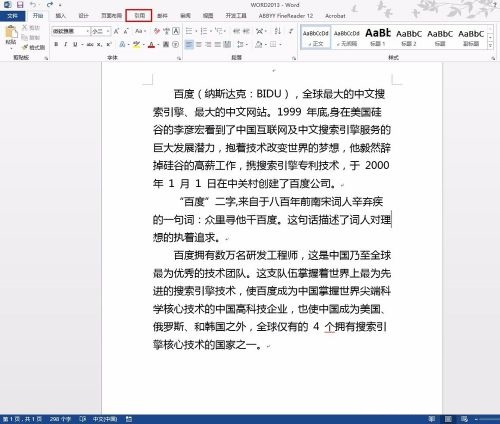 第二步:点击功能区的“引用”功能(如图所示)。