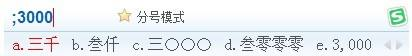 第三步:之后再分号的后面去输入金额数值,去选择出现的候选词即可。