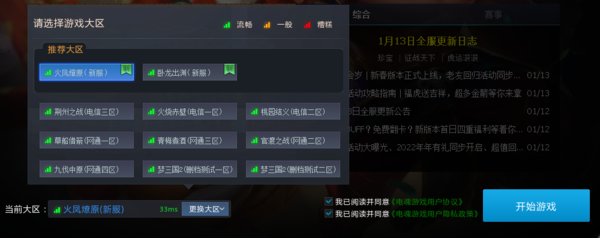 完成实名制认证之后,回到梦三国2客户端页面,在页面左下方点击“更换大区”键就可以进行大区选择,更换好游戏服务区后,直接点击右侧的“开始游戏”按钮,就能正式打开游戏页面开始游戏了。