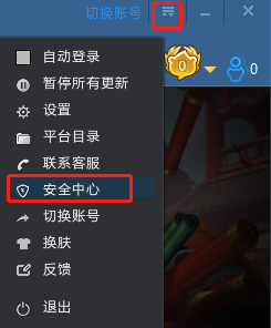 还没有在梦三国2上进行实名认证的小伙伴,在打开梦三国2客户端之后,点击页面右上角的“平台选项”键,在出现的下拉选项中,选择“安全中心”选项。