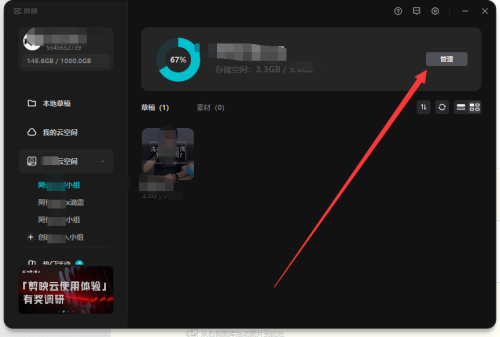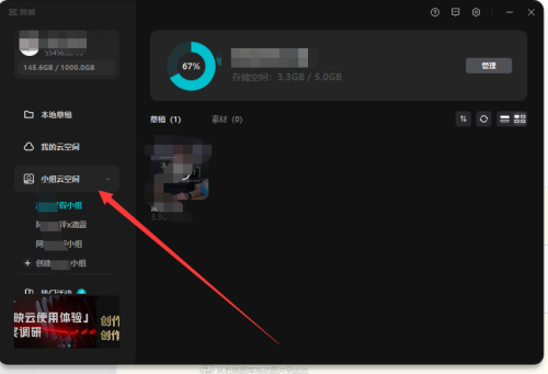 第一步:打开剪映电脑版,点击左侧小组云空间。